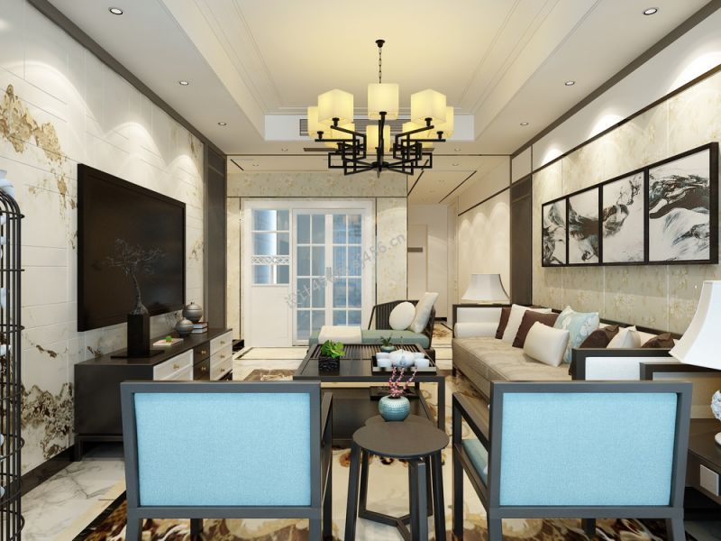 客厅新中式装修效果图 2020新款电视墙装修效果图