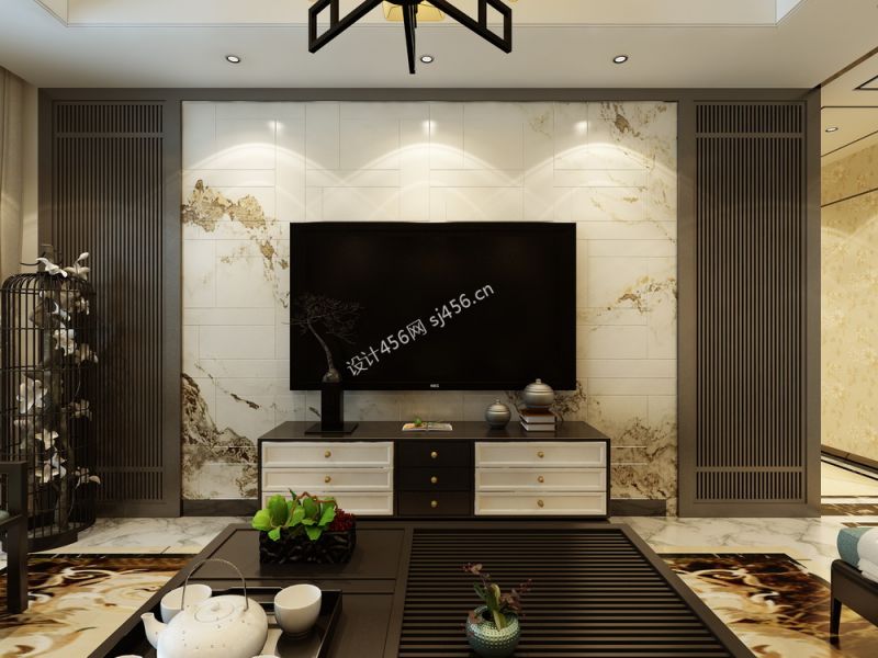 2020时尚新中式家装效果图 2020客厅电视墙设计