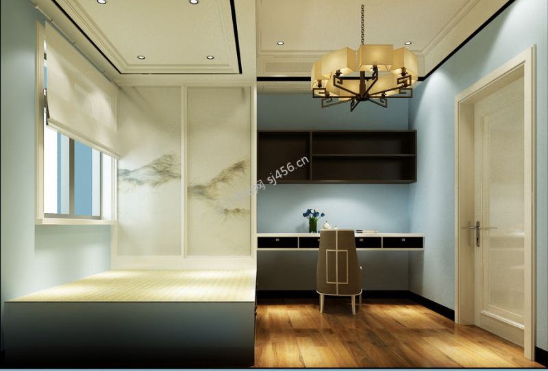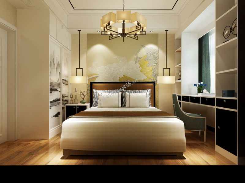 2020新中式卧室装修图片欣赏 2020卧室飘窗书桌效果图