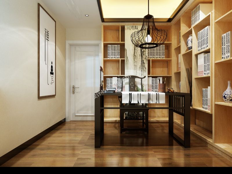 2020新中式书房设计效果图 2020开放式书柜设计图片