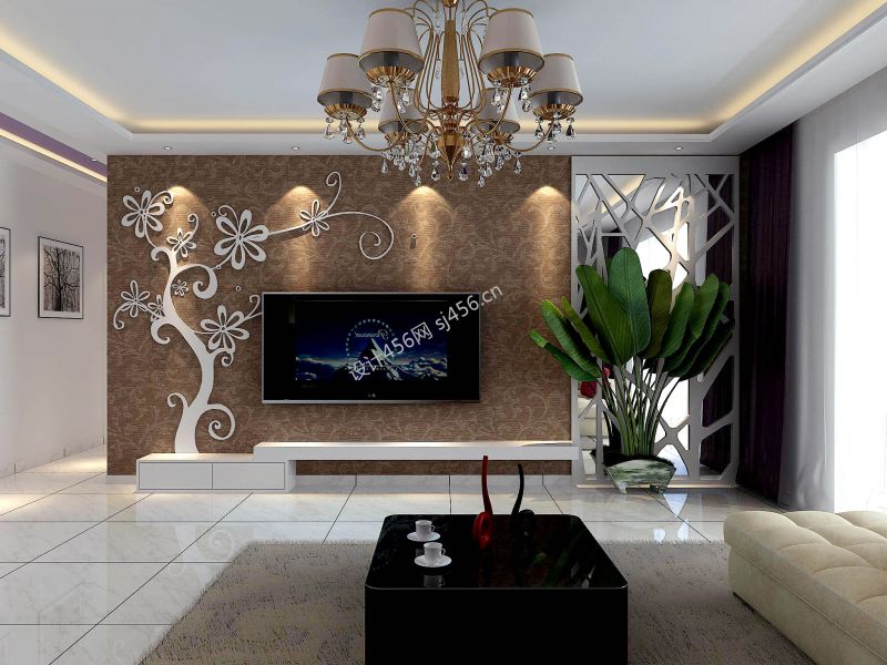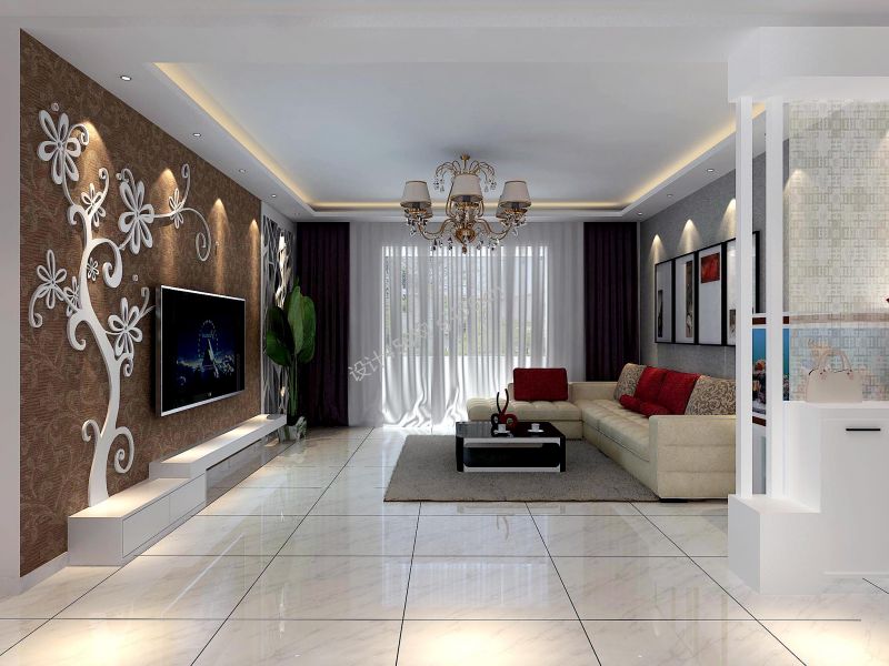 2020现代两室两厅效果图 装修客厅电视背景墙设计