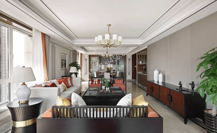 150平米新中式风格三居室客厅家居装修案例