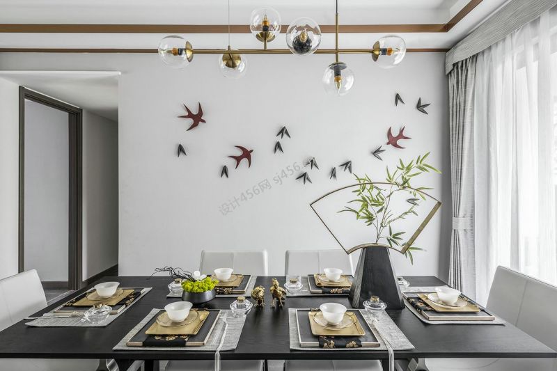 新中式113平米三室两厅餐厅装修效果图