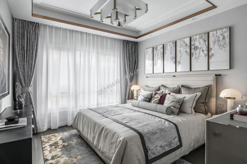 新中式113平米三室两厅卧室装修效果图
