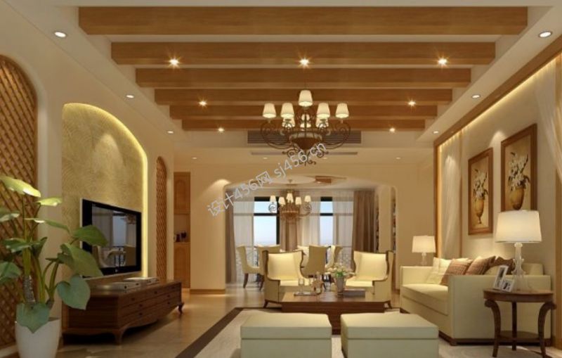 160平米东南亚混搭三居室客厅吊顶装修案例