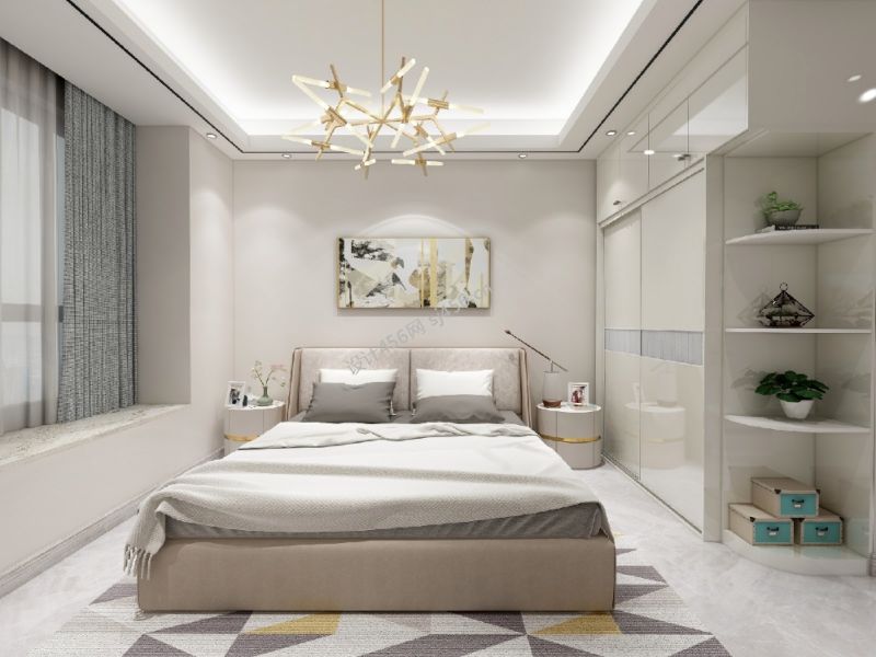 92平米现代轻奢风格三居室主卧室装修案例图片