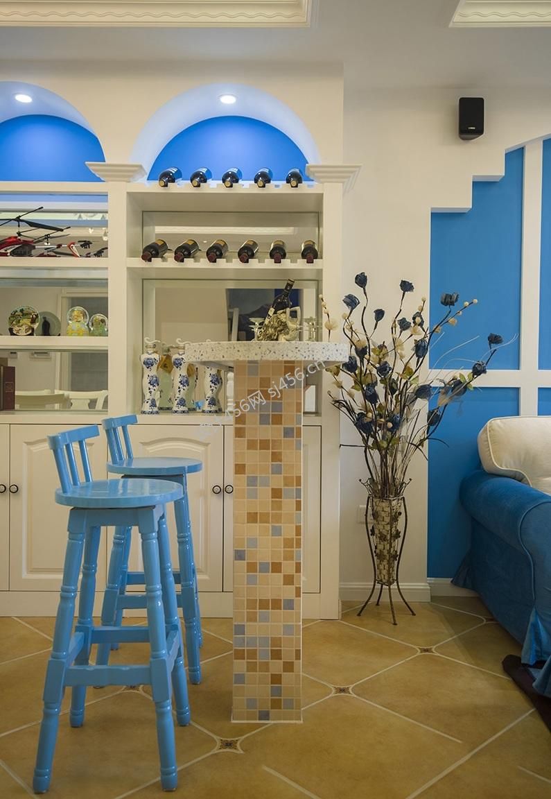 地中海风格96平米三室两厅吧台家装效果图