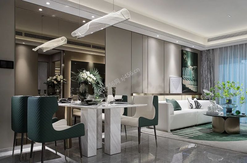 130平方现代风格三居室餐厅客厅一体装修案例