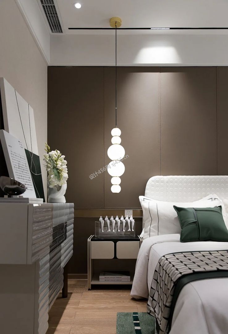 130平方现代风格三居室卧室床头设计装修案例