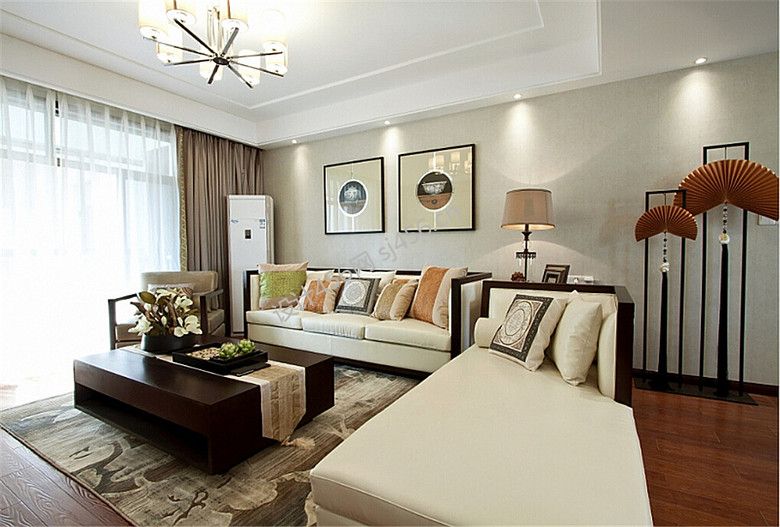 现代中式98平米三室两厅客厅装修效果图