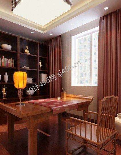 现代中式98平米三室两厅书房装修效果图