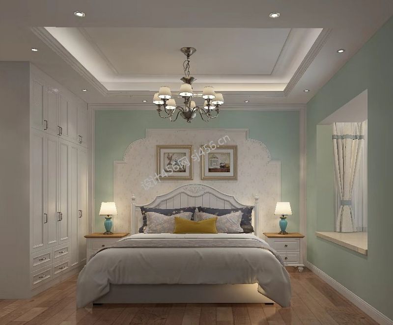 95平米美式田园风格三居室主卧室背景墙设计案例