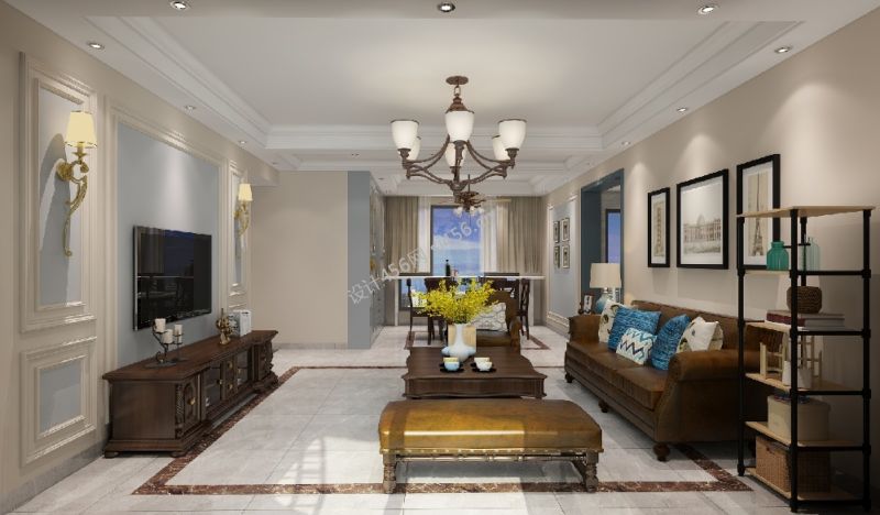 138平米美式风格四居室客厅天花板设计装修案例