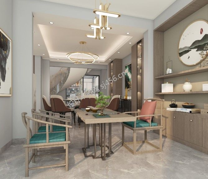 242㎡现代简约风格别墅餐厅茶室一体装修案例