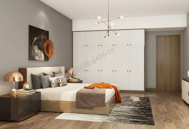 242㎡现代简约风格别墅次卧室软装装修效果图
