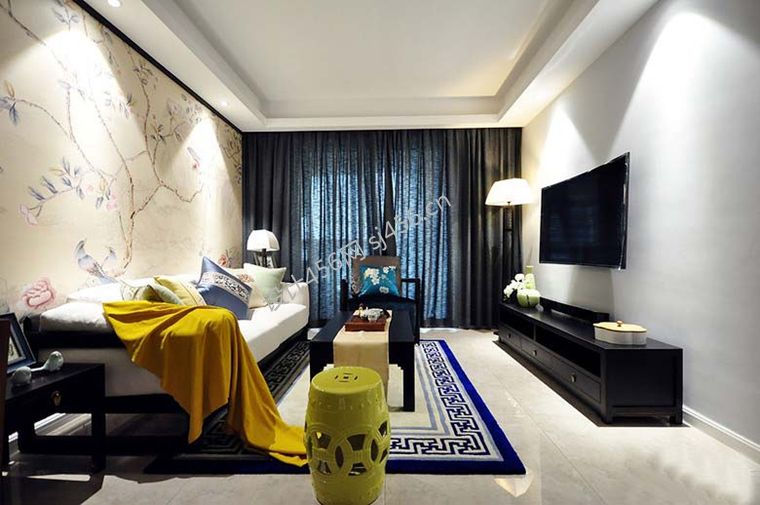 100平米新中式风格三居室客厅家居装修效果图