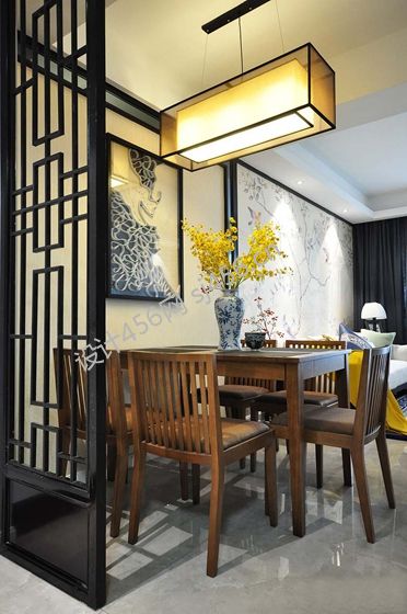 100平米新中式风格三居室餐厅隔断装修设计图