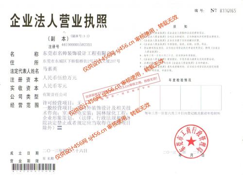 东莞市名帅装饰设计工程有限公司是经市工商局注册的正规企业.专业从事家装,豪华别墅,写字楼,厂房等室内外装饰装修工程.倡导口号“绿色环保、质量第一”,我们坚持“诚心、诚实、诚意”的服务态度,秉承"融合中西文化精萃,坚持以人为本,创造装饰工程典范"的经营理念。追求艺术生活化、建筑规范化、服务优质化、发展永续化,以不断满足人们日益增长的生活需求为宗旨,服务顾客。期待与您携手,共创美好空间!!!
