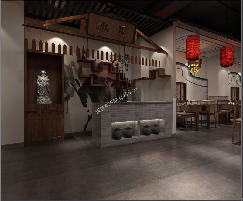 某餐饮店230平新中式风格室内吧台装修设计案例