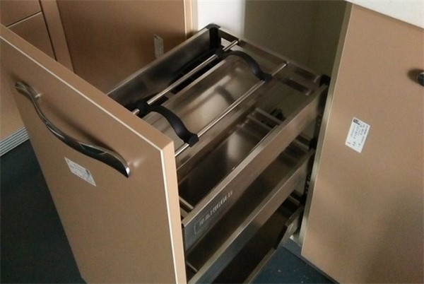 ▲拉篮可以很巧妙地把各种厨房用具整理起来,起到很好的收纳作用。据不同的用途,可分为炉台拉篮、三面拉篮、抽屉拉篮、超窄拉篮、高深拉篮、转角拉篮等。有的橱柜商提供拉篮,而有的需要根据橱柜尺寸额外定制或购买,定制拉篮一定要提供精确的橱柜尺寸,否则白白浪费金钱。购买时还要注意区分镀铬拉篮和不锈钢拉篮。