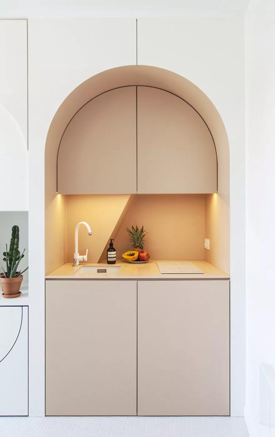 白色壁橱下方隐藏着餐桌