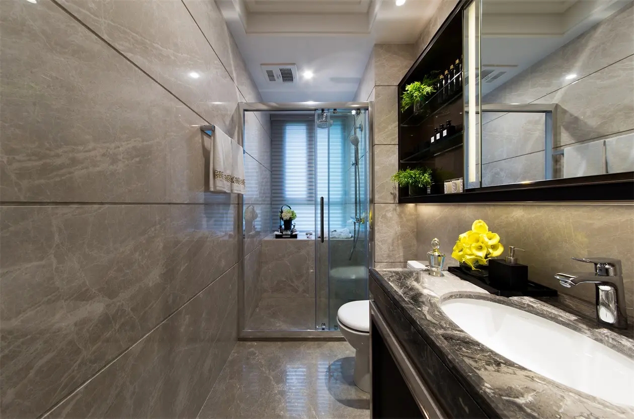 通常情况下,根据卫生间面积大小不同,卫生间干湿分离的设计方案也不同。最简单的方法是安装淋浴房把洗浴单独分出,淋浴房一般会设置在卫生间里面的角落,让外面的区域保持干爽。淋浴房的品种多样,平面形状有正方形、长方形、扇形、钻石形等,根据所占空间大小,常用的正方形淋浴房尺寸一般为800~1000mm。如果安装浴缸,可以采取玻璃隔断或者玻璃推拉门。较小的卫生间也可以安装浴帘,但隔水效果较差。