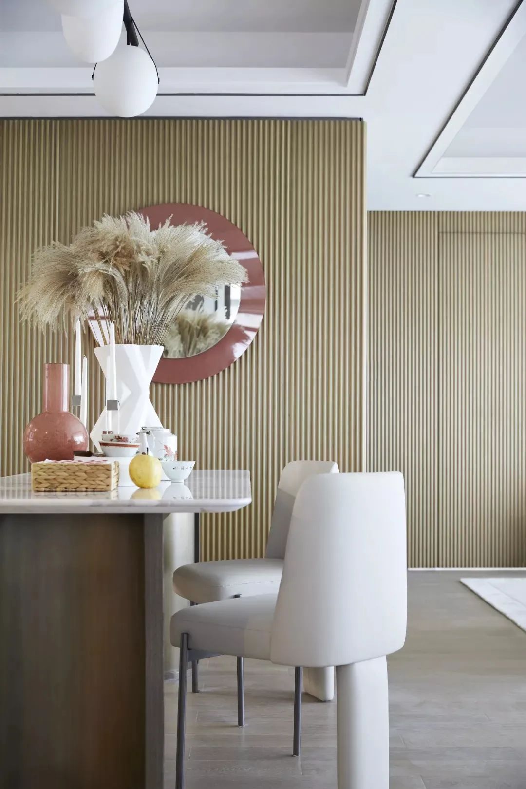 ▲大理石台面的餐桌,搭配皮艺质感的餐椅,优雅与时尚的质感,现代而高端。
