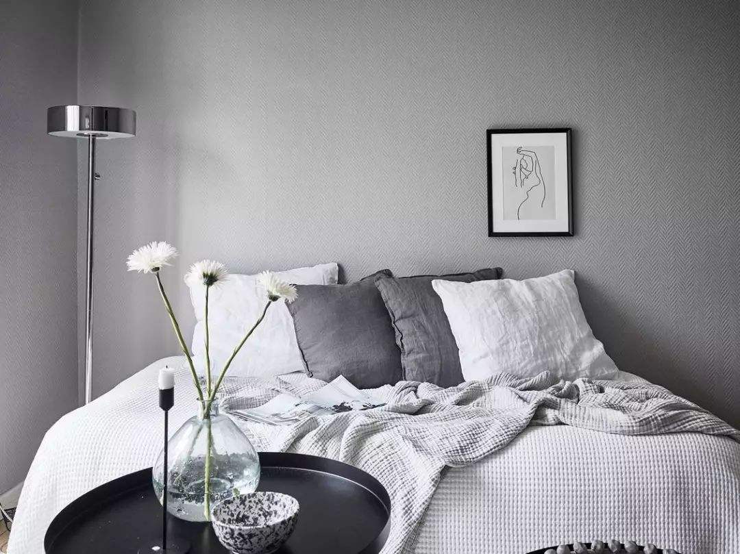 浅灰色给人的觉得是稳重和舒适,浅灰色也是一种比拟百搭的颜色,所以比拟好搭配其他家具,可以很棒的装饰卧室。