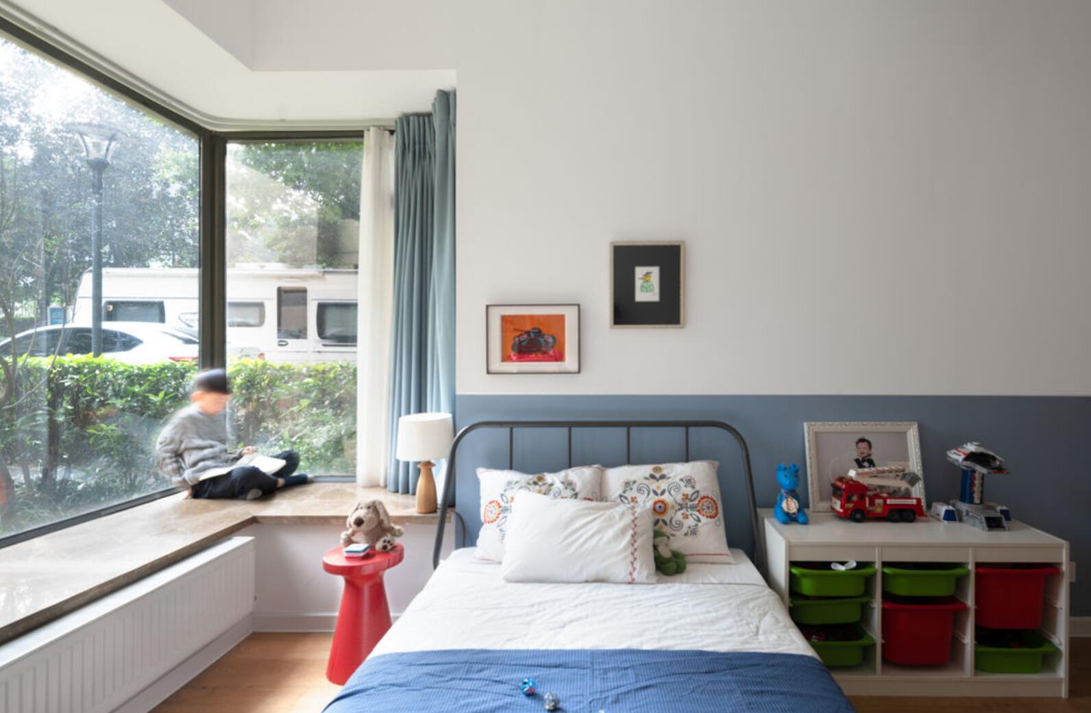 儿童房的硬装设计与主卧差不多,床品和家具的颜色就选择了比较多彩的,也更加符合儿童的喜好。