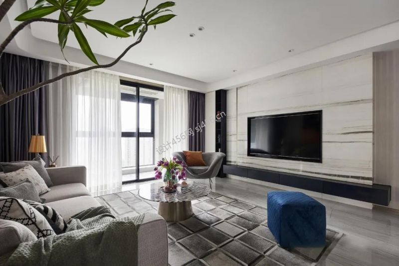 详情160㎡平层轻奢风格客厅地毯装修效果图