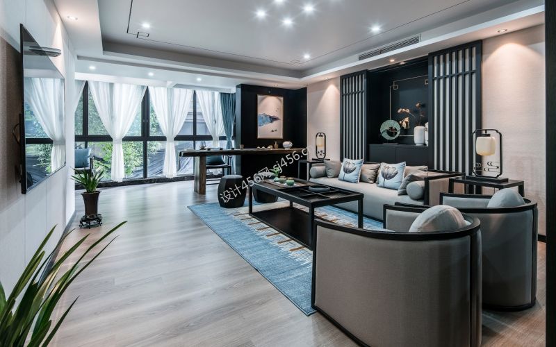 143平方四室新中式沙发装修效果图