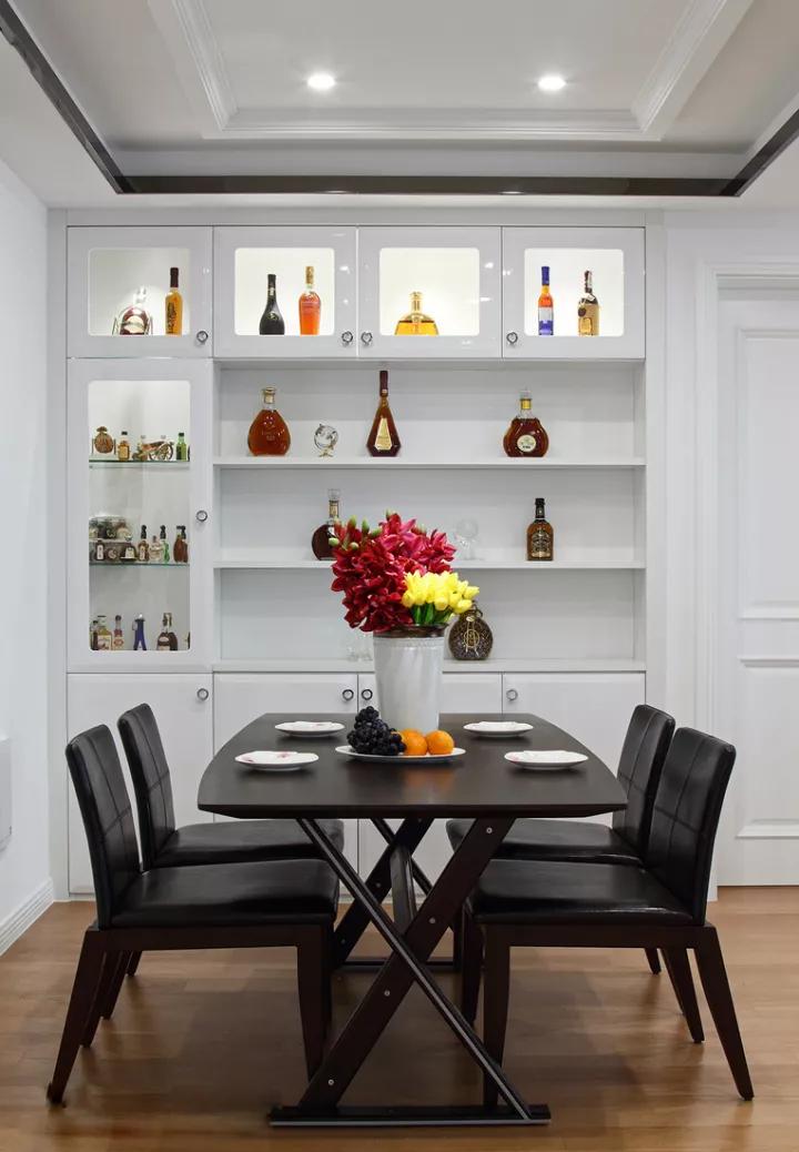 餐厅边上放置酒柜应该是取用最为方便的,或者可以将其称之为放酒用的餐边柜更为合适。像图中这款餐厅酒柜的设计就非常好用,不同的分格设计展示了不同的藏酒方式,所以它的装饰表现力也是很不错的,同时酒柜还有隔断作用,在餐厅与客厅之间做了一个分割。
