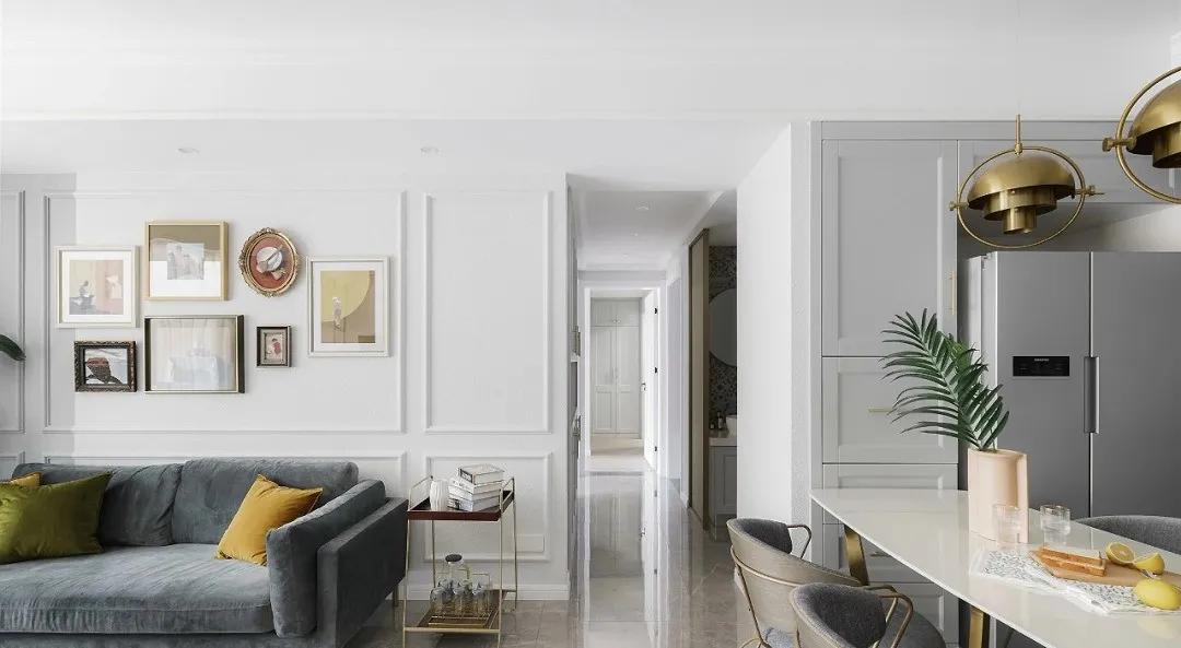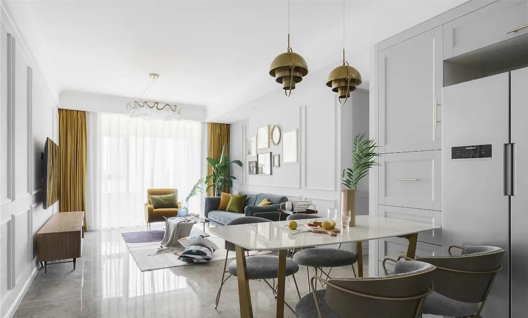 今天美艺美家装饰来和大家欣赏一组110平舒适北欧风格新房装修案例。客厅电视墙和沙发墙统一采用了线框设计,软装更简约利落。餐厅桌椅非常轻巧,嵌入式餐边柜容纳冰箱,更能容纳更多小物件。