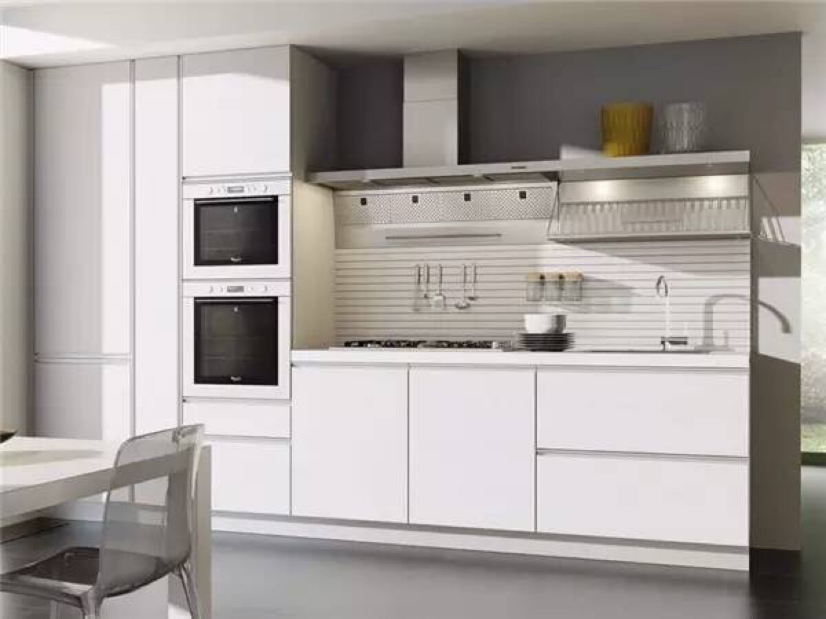 嵌入式家具最 大的优势在于它能和小区域内的造型高度完全契合,是整体设计中不可分割的部分。把家电或是柜体嵌入墙体内,不凸出来,就可以极大减少空间被占用的面积,从而使小空间显得更大。