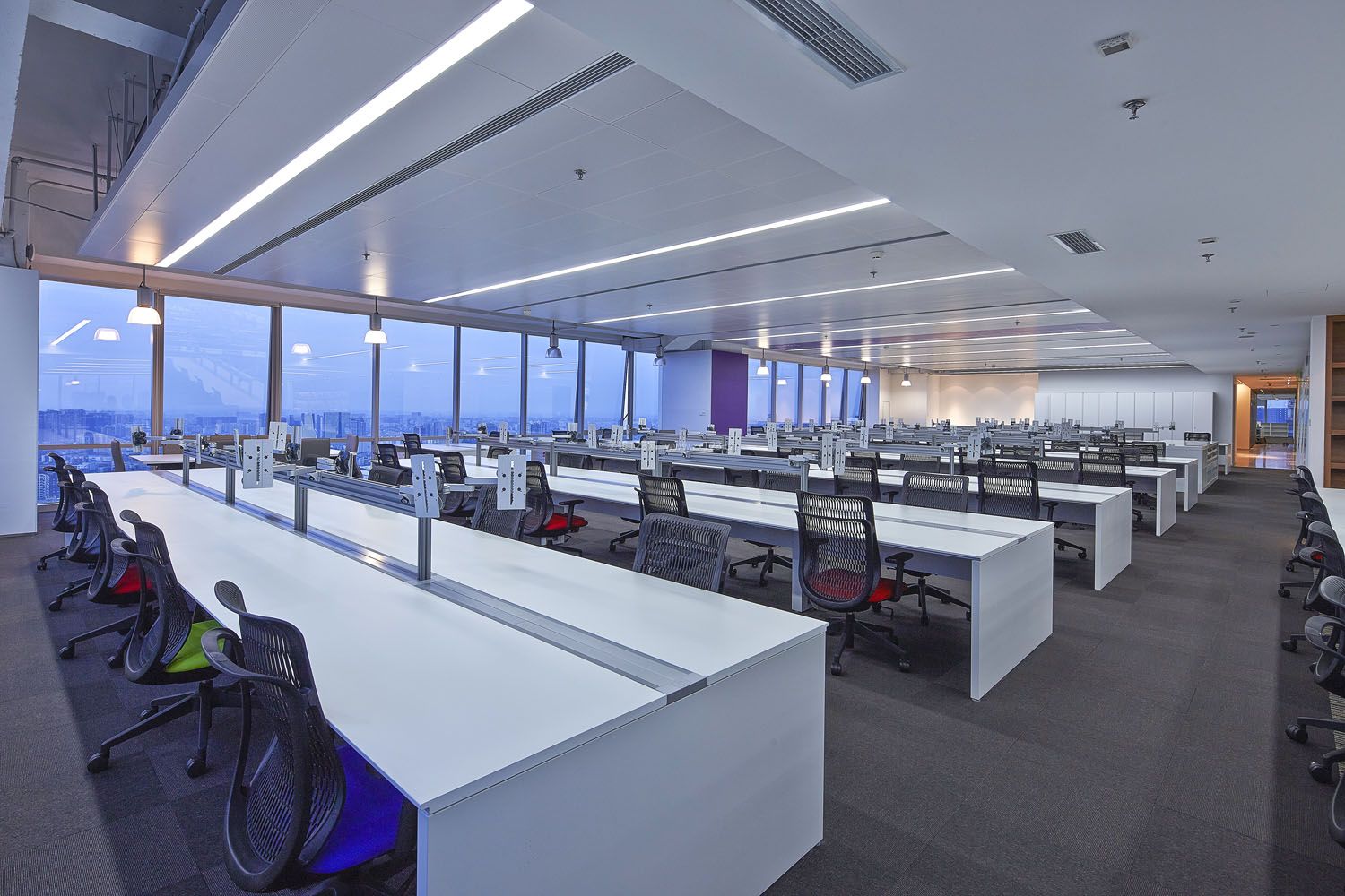 组合式办公室装修设计,这主要是指大空间办公室,这种办公室装修风格在大公司中应运较多,有利于员工间的合作,既能增强团队意识,又能有效减少办公区域面积。不利之处在于办公室比较杂乱,人员容易互相干扰。