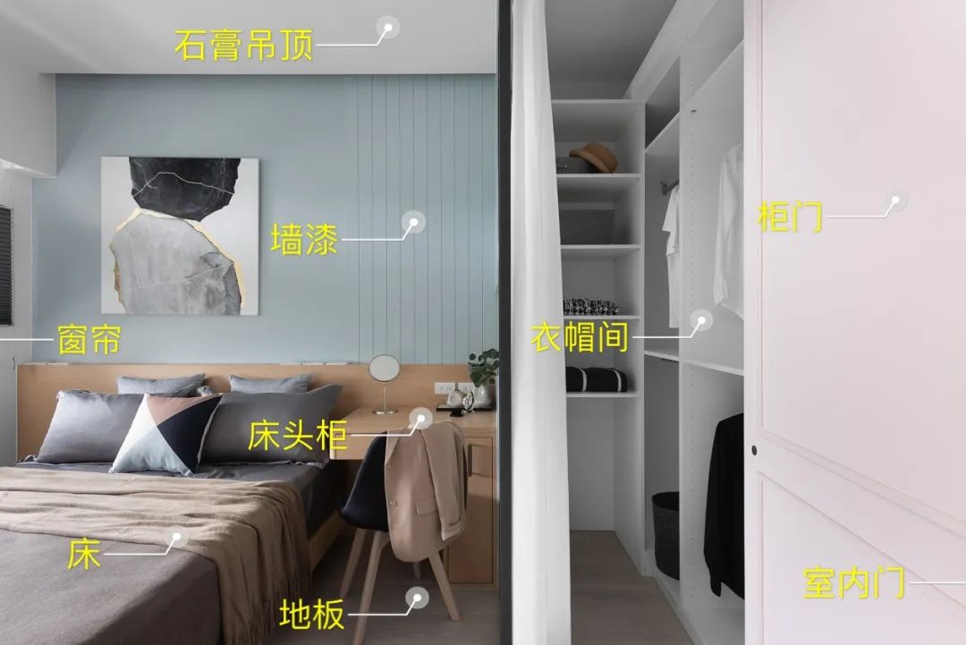 衣柜:包括柜体和移门,衣柜每个卧室必不可少,装衣收纳的好帮手,一款实用环保的衣柜,除了板材要好以外,同时也少不了好的五金,另外售后也很重要,最 好选择售后有几年质保的商家,减少后期烦恼。