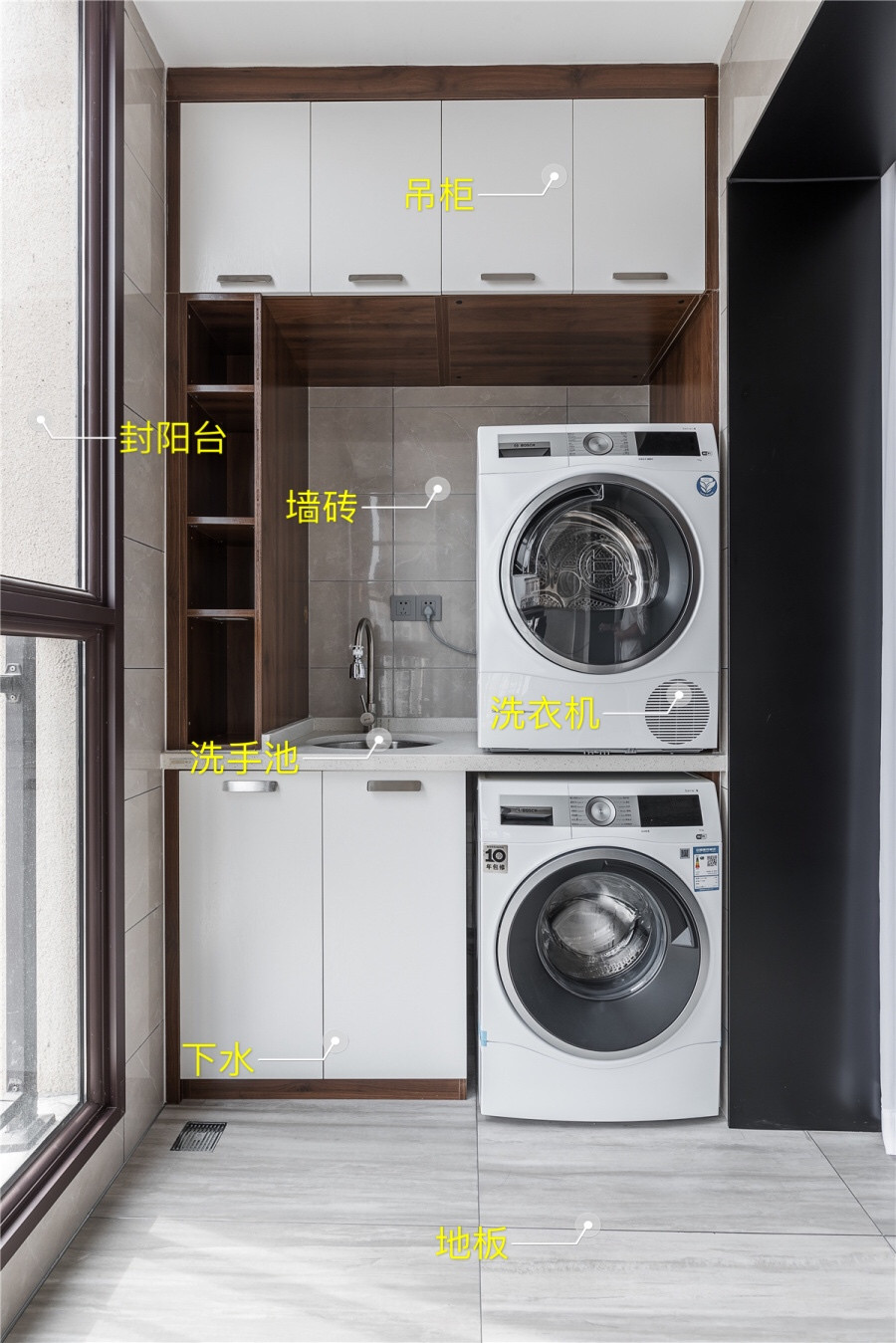 吊柜/杂物柜:放洗衣液洗衣粉鞋刷之类的,不要太方便哇!阳台一定要有柜子,吊柜不占地面空间