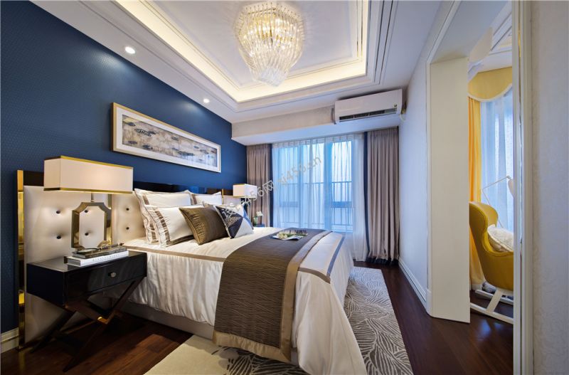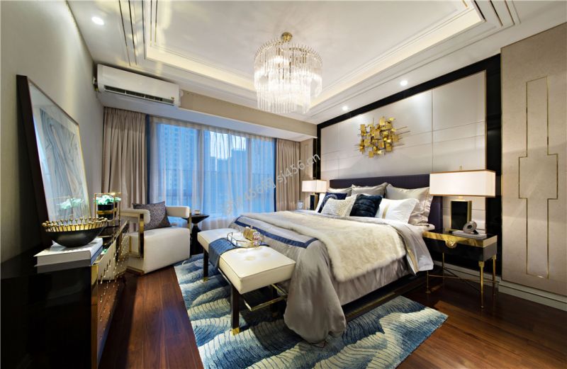 115㎡三居室现代轻奢卧室吊顶装修效果图
