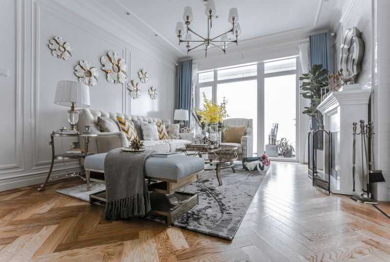 94㎡二居室法式轻奢客厅吊灯装修效果图