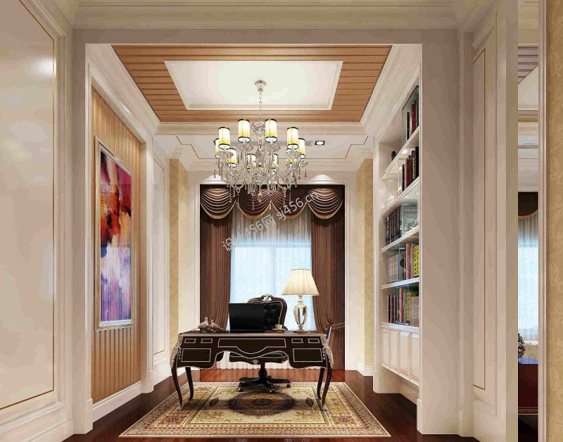 江滨九号130平米欧式三居书房装修设计效果图