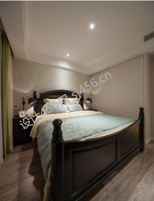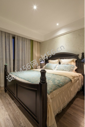 130平欧景名城美式风格家庭卧室纱帘装修装饰效果图