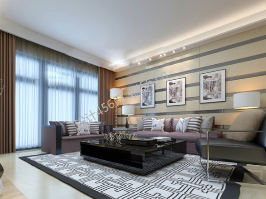 紫荆公馆现代风格客厅背景墙装饰装潢效果图