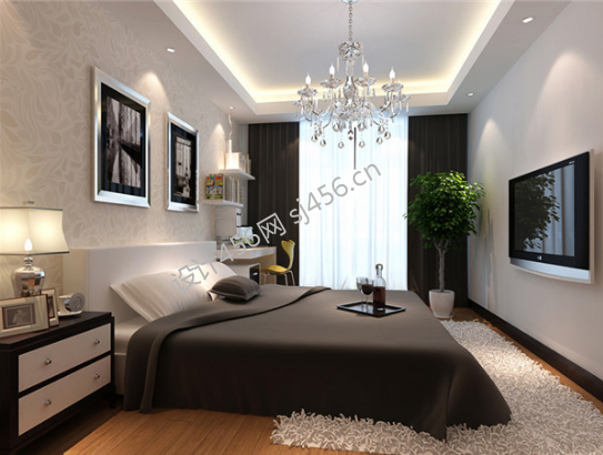紫荆公馆现代风格家庭卧室白色地毯装饰图