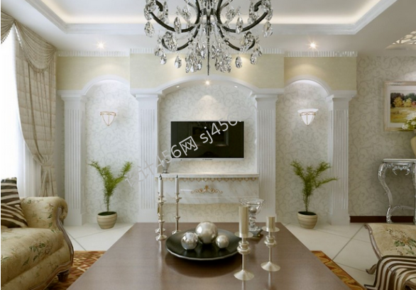 九龙公馆欧式风格客厅电视墙设计造型图片