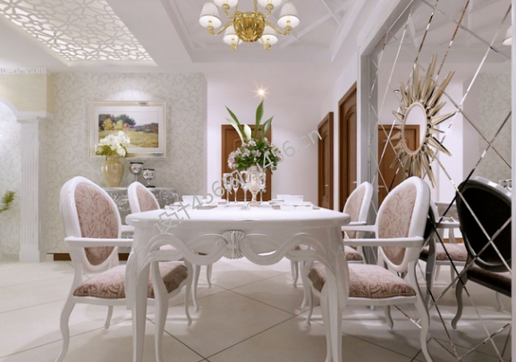 九龙公馆欧式风格餐厅镜面背景墙设计图片