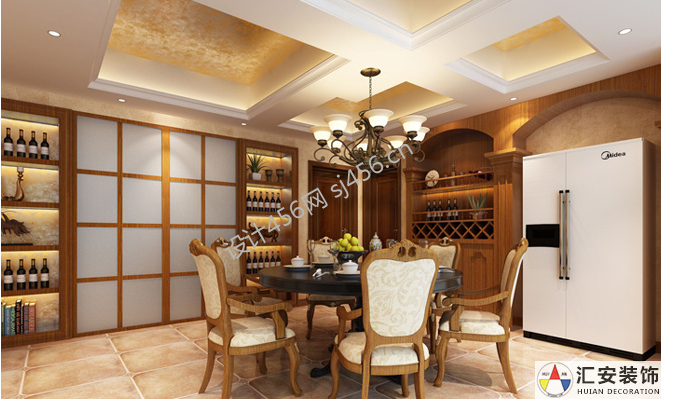 江滨新城130平米美式餐厅装修设计效果图欣赏