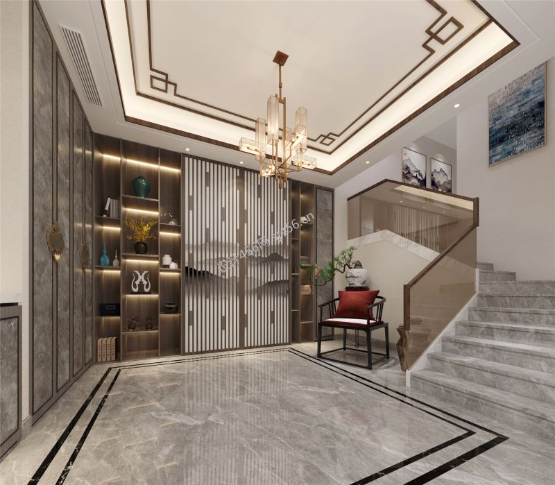 中式风190平米别墅楼梯间装修效果图
