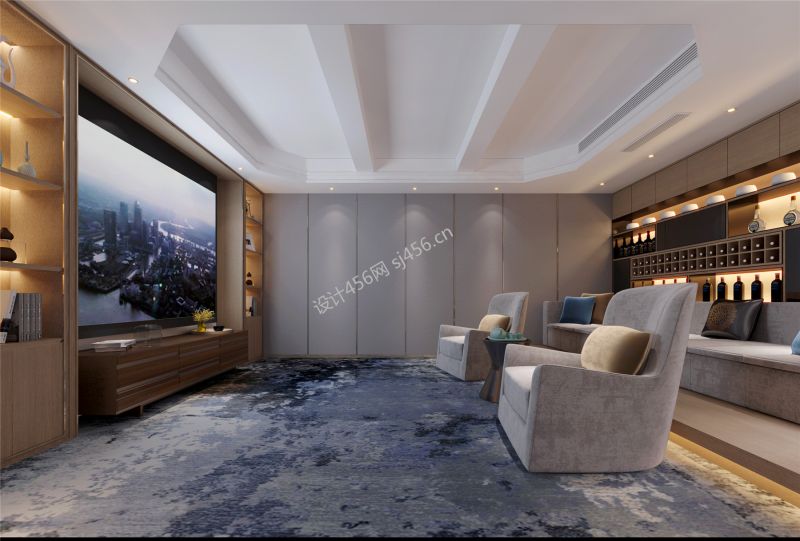 中式风190平米别墅影视厅装修效果图