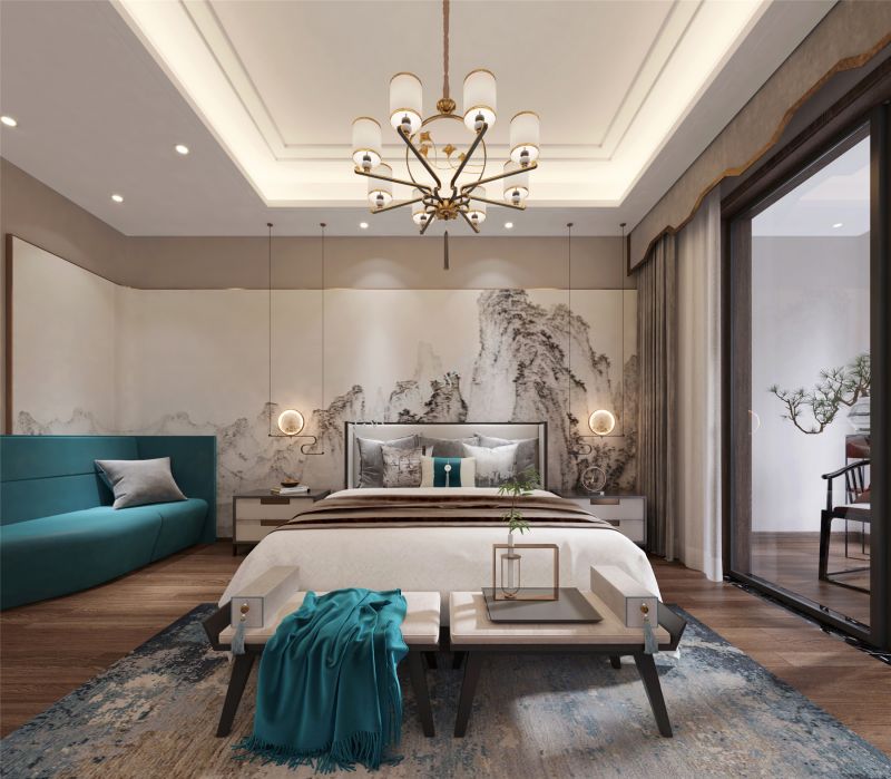 中式风190平米别墅卧室装修效果图