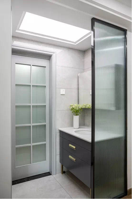 人体感应灯的设计便于了夜晚的上卫生间的方式,而干区的透光膜的设计更为贴心的考虑到了女主的梳妆打扮。